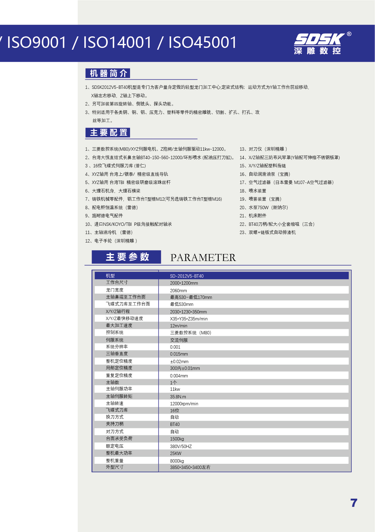 數控龍門加工中心CNC2012V5-BT40高速數控機床
