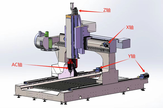 2. 運動方式為Y軸龍門前后運動,X軸機頭左右運動,Z軸主軸上下運動,A軸可±110·旋轉、C軸可±360·旋轉。